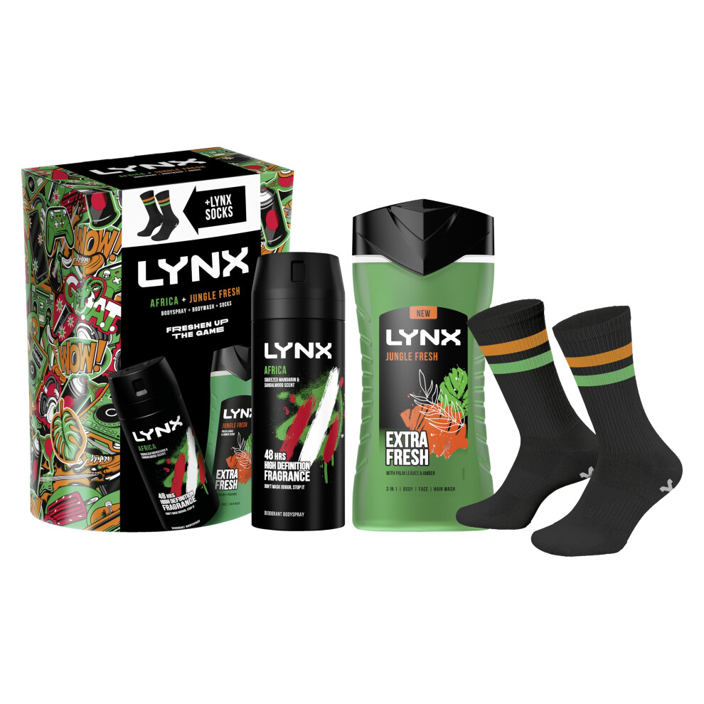 Lynx Gift Set Africa & Sunset Fresh with a Body Spray, a Body Wash and Socks Per
