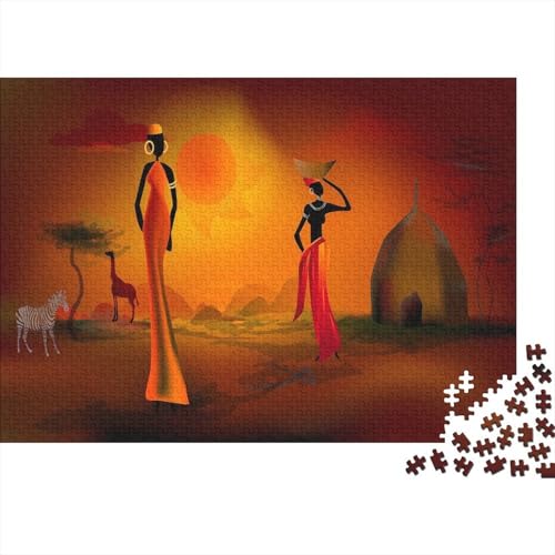 African Women—sunset Landscape Art Jigsaw Puzzle African Savanna Art for Men, Gifts for Women Educational Game, Decompression 38x26cm/1000pcs