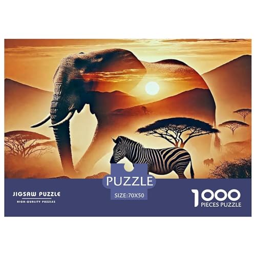 Elephant Challenging Puzzles 1000 Piece - African Elephant Sunset for Men And Women Puzzle for Adults Gifts Wall Decoration70x50cm/1000pcs