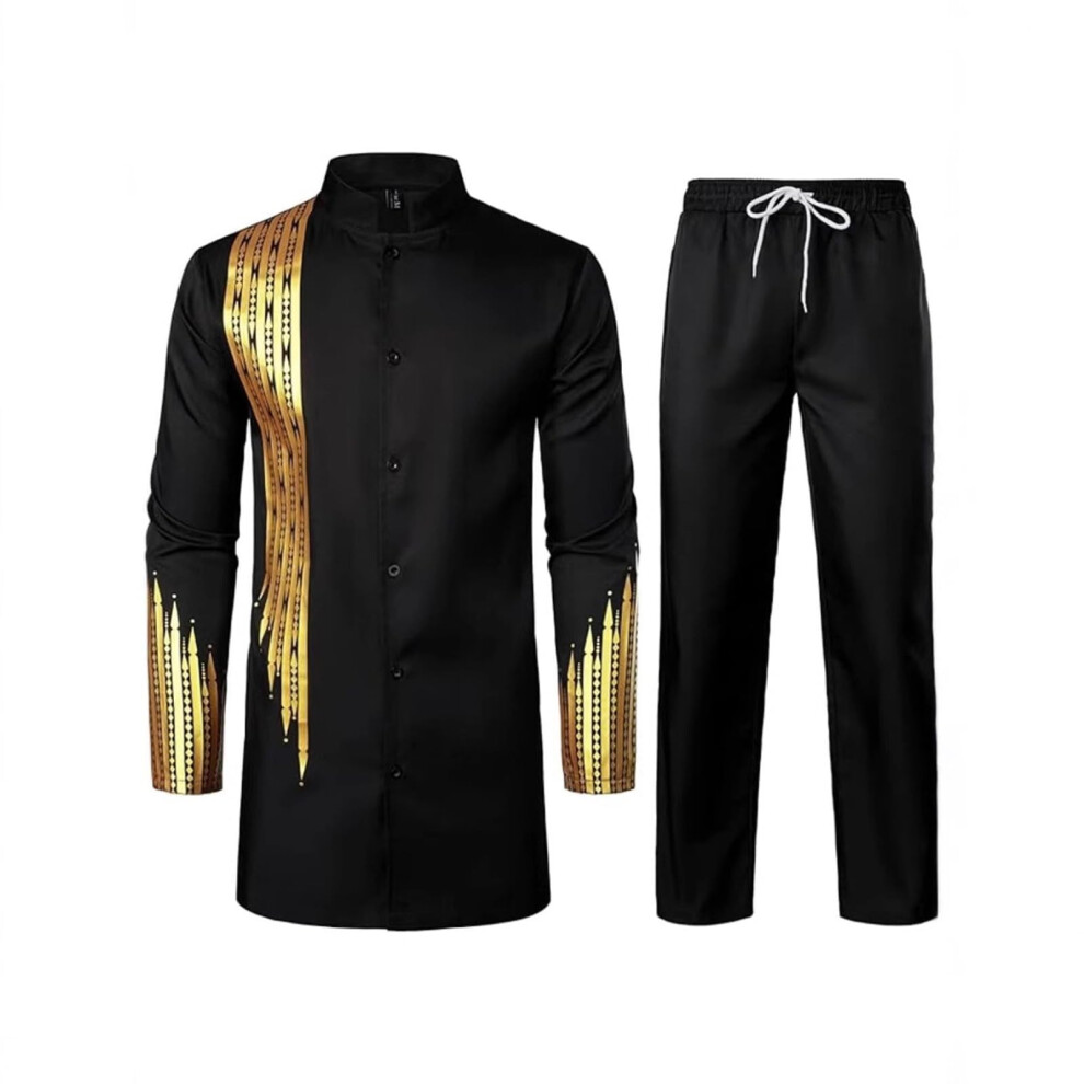 African Suits for Men Tracksuit Dashiki Embroidery Shirts and Trousers Set of 2 Ankara Outfits XL Blue