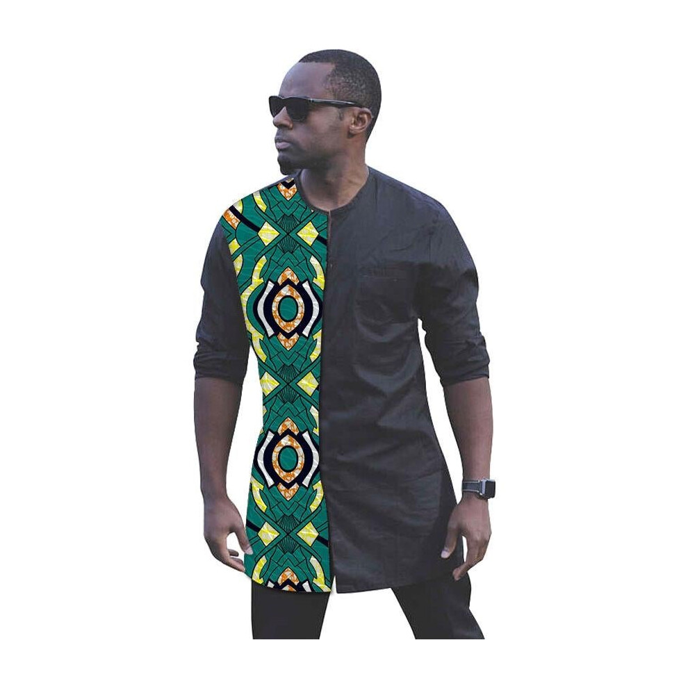 African print shirts for men fashion patchwork slim fit long sleeve dashiki tops africa clothing customize