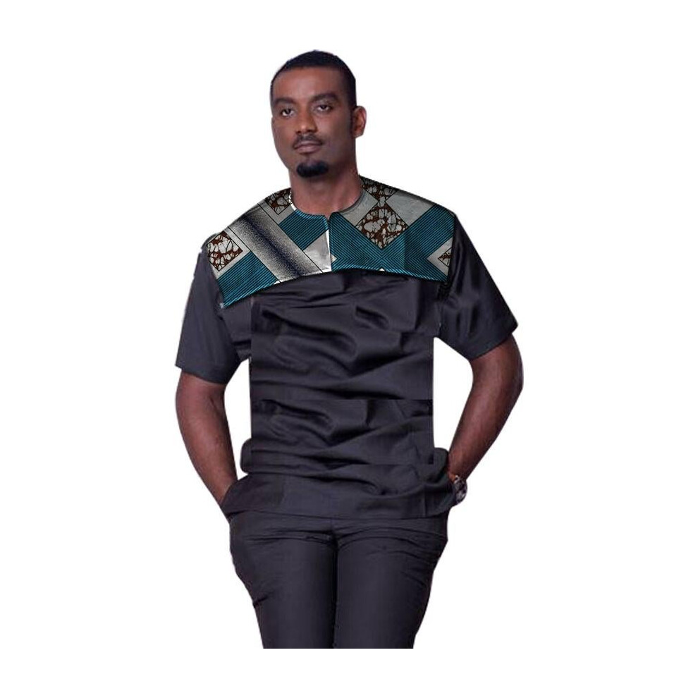 Black silk patchwork african shirt for men short sleeve dashiki tops ankara print africa style traditional clothing man tshirts