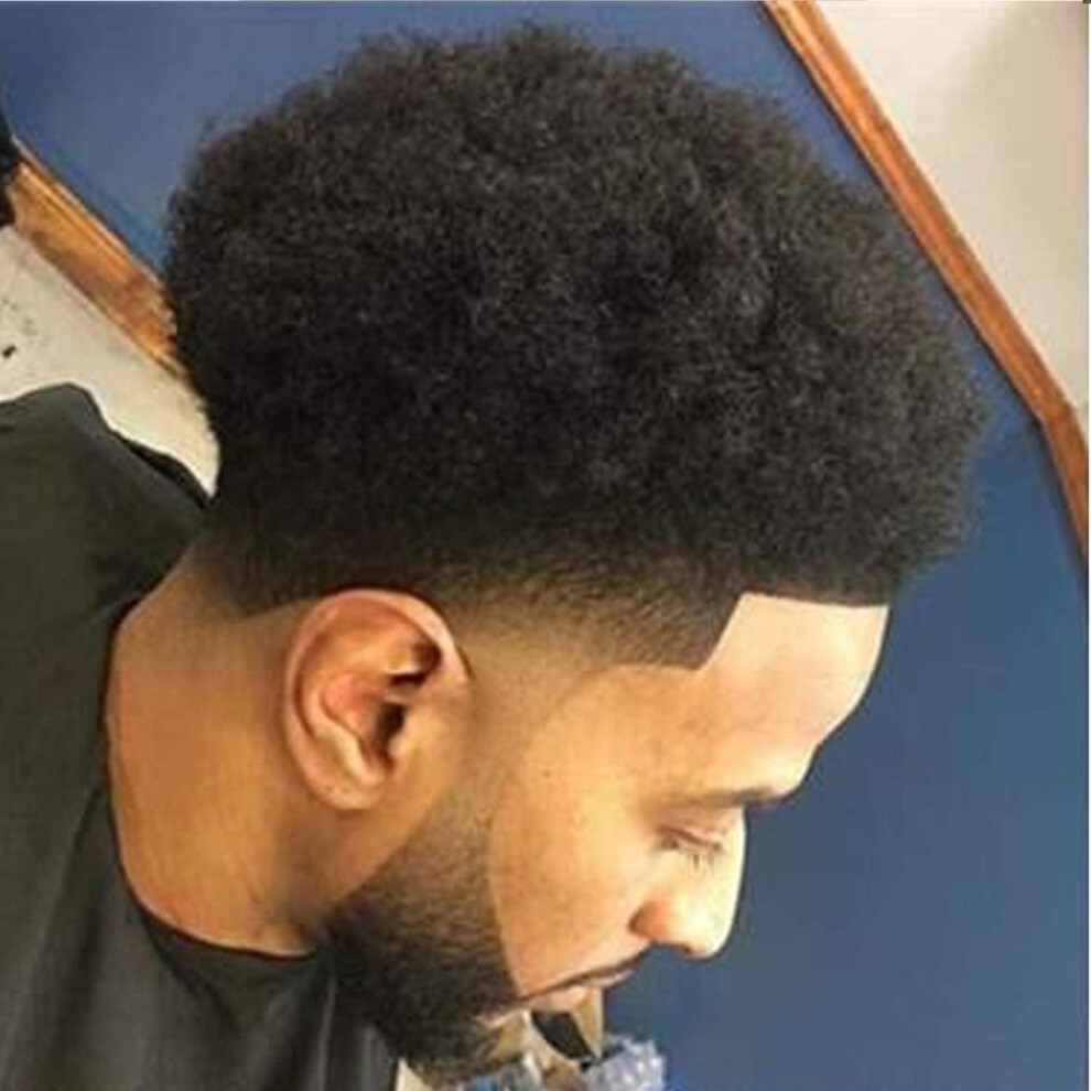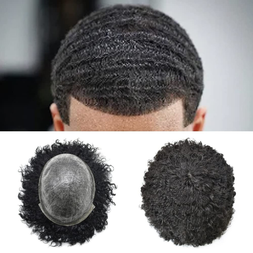 Afro Mens Toupee for Black Men Hair Unit for African American Men PU Injected Man Wave Mens Toupee Brazilian Human Hair Replacement System Afro Hair U