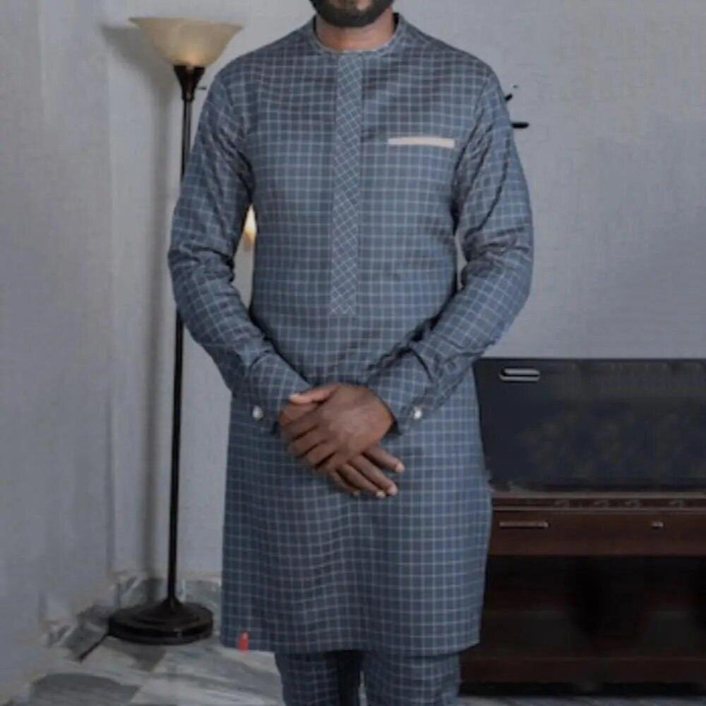 African Suits for Men Dashiki Kaftan and Trousers 2Piece Ramadan Outfit Ankara Set Gray M