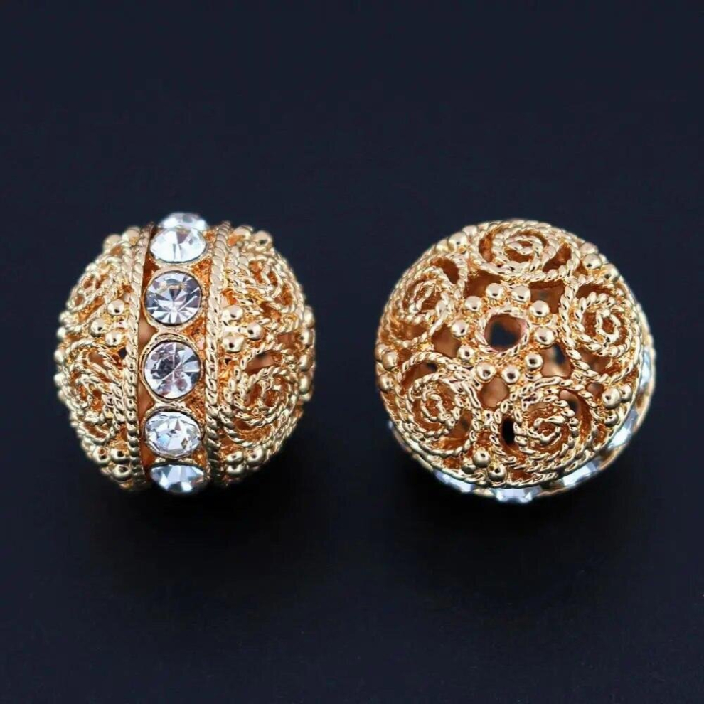 Bracelet Bead Round Ball Spacer Beads Rhinestone Pave Metal Filigree Charms DIY for African Women Men Jewelry Making