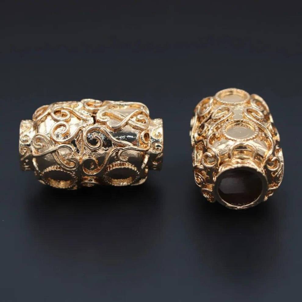 10pcs Hollow Flower Metal Spacer Beads Hole 2mm Drum Beading DIY Jewelry Findings for African Men Women Wedding Bracelet Making