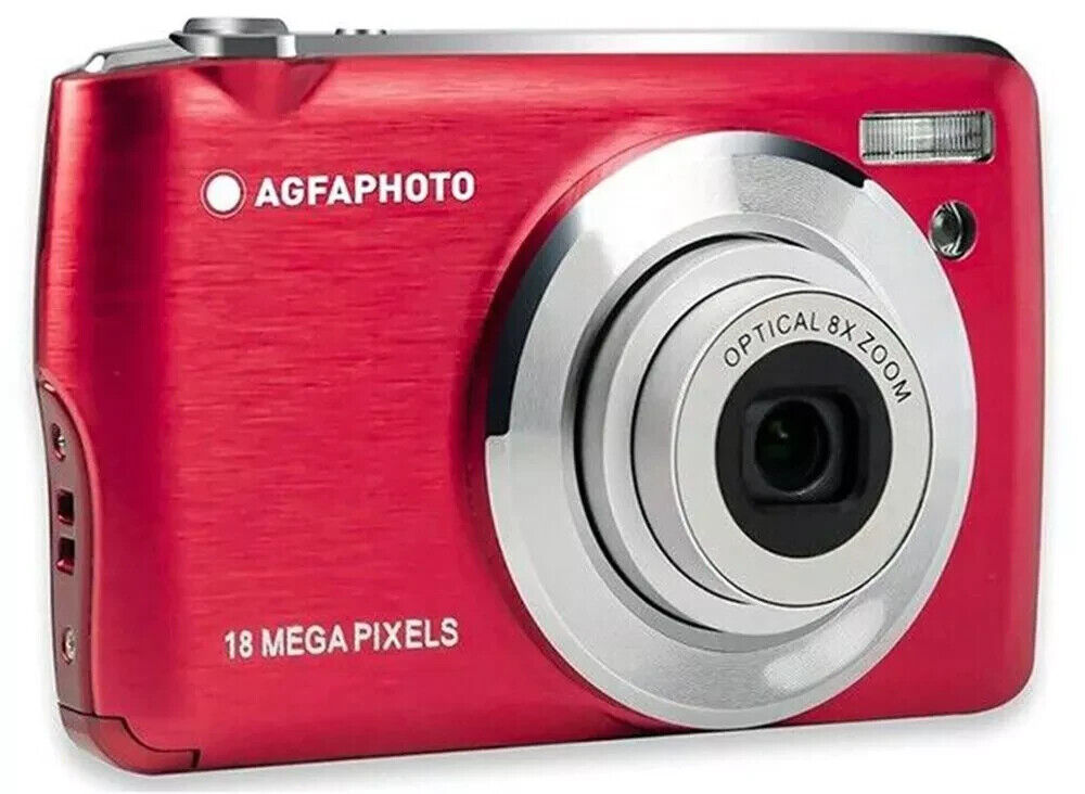AGFA PHOTO Realishot DC8200 - Compact Digital Camera, 18MP, Full HD Video, 2.7'' LCD Screen, 8X Optical Zoom, Lithium Battery and 16GB SD Card - Red