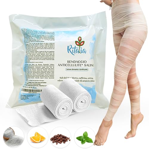Ritalia® Anti Cellulite Wraps | 2 Body Wraps with Dead Sea Salt, Caffeine & Ivy | 10m Vegan Bandages for Cellulite Treatment | Firming, Draining & Inch Loss on Legs, Thighs, Belly & Arms