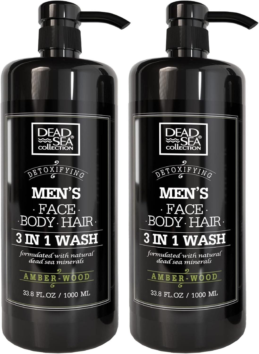 Dead Sea Collection Mens Shower Gel 3 in 1 with Amberwood Oil and Dead Sea Salt