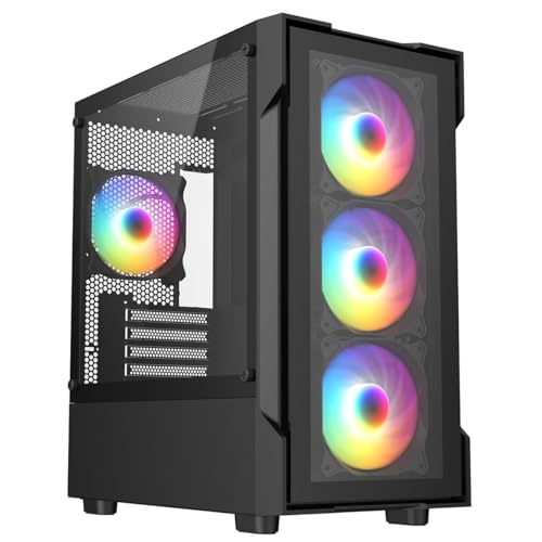 CiT Tsunami Black Gaming PC Case – Micro-ATX Computer Case - 4 x 120mm ARGB Fans Included - Tempered Glass Front & Side Panels - AIO Liquid Cooling Support - USB 3.0, 2x USB 2.0 - HD Audio/Mic