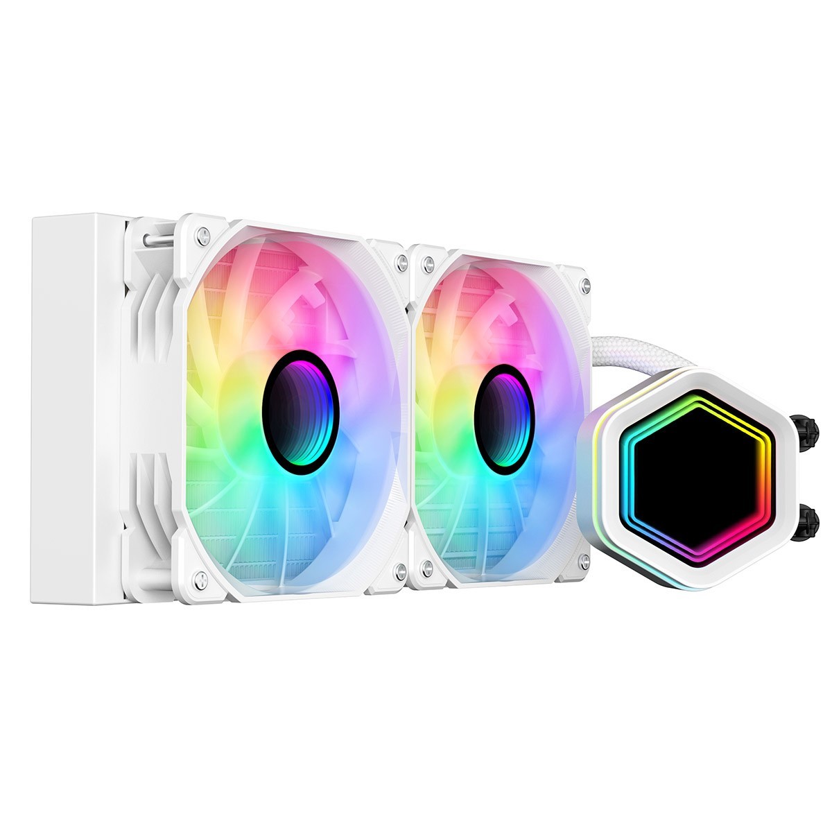 Edge 240 Water Cooler 240mm ARGB LED CPU AIO Cooling Kit 2x PWM Fans White