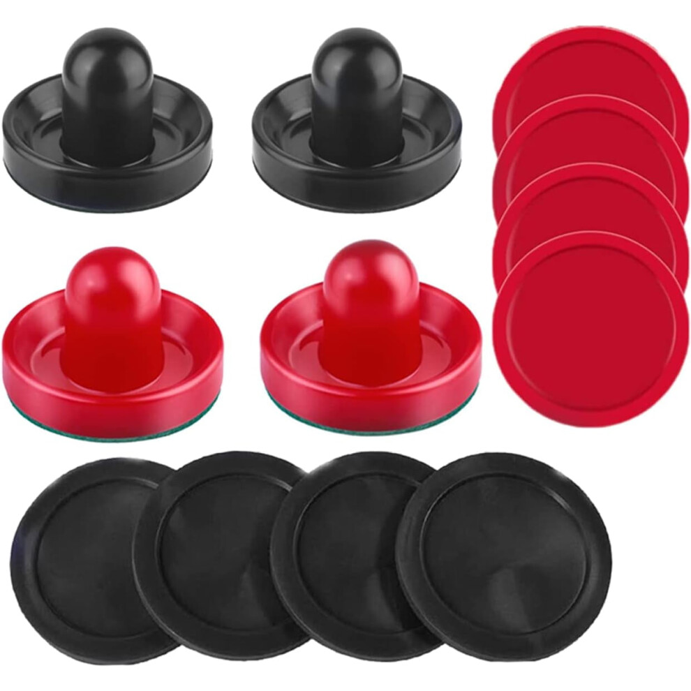 4Pcs 96mm Air Hockey Pushers Air Hockey Ball Table Mallet Goalies with 8Pcs Pucks,Red