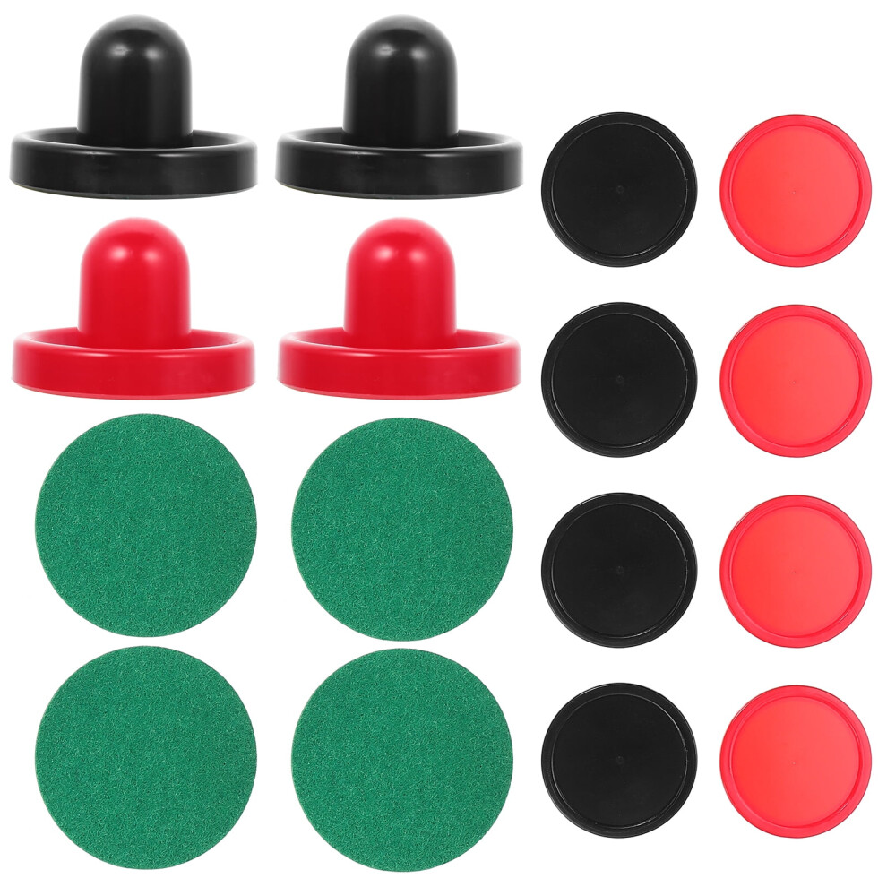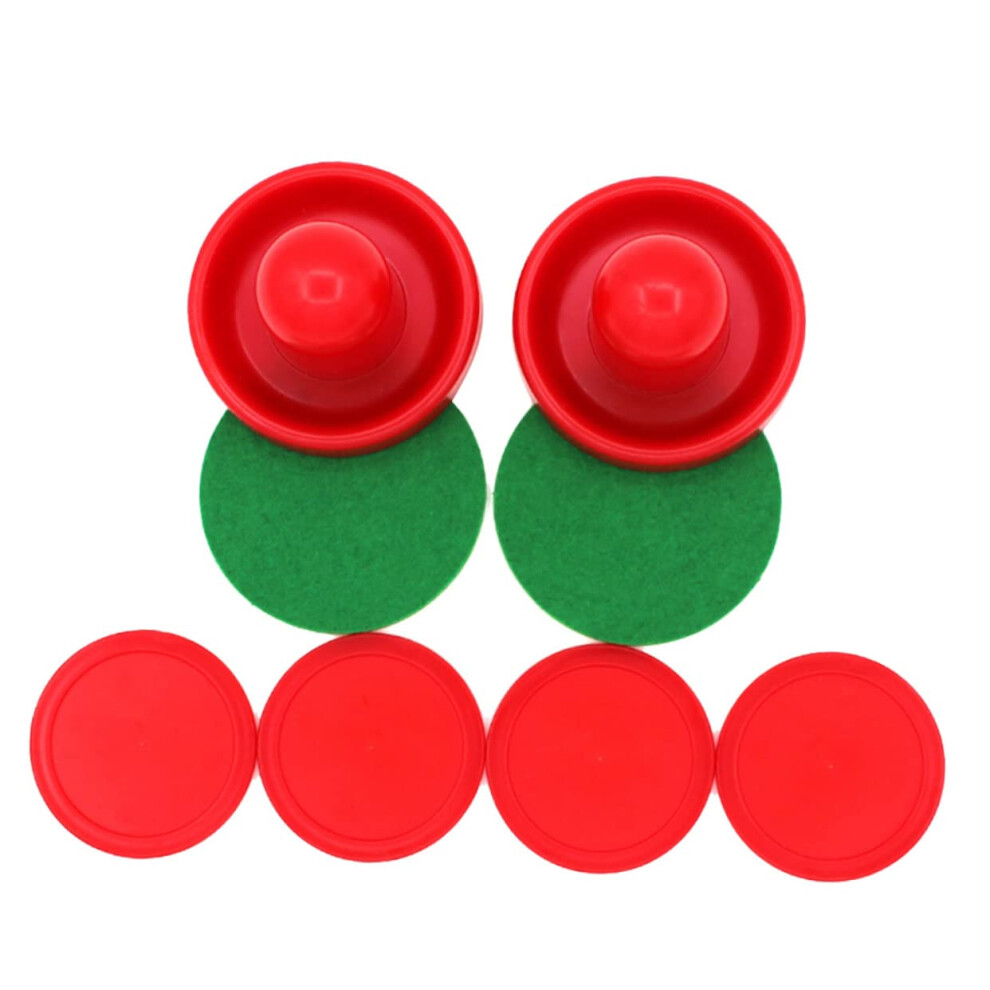 TOYANDONA 4pcs Air Hockey Puck Air Hockey Table Paddles and Pushers Set Handle Putter Red Felt Pad Desktop