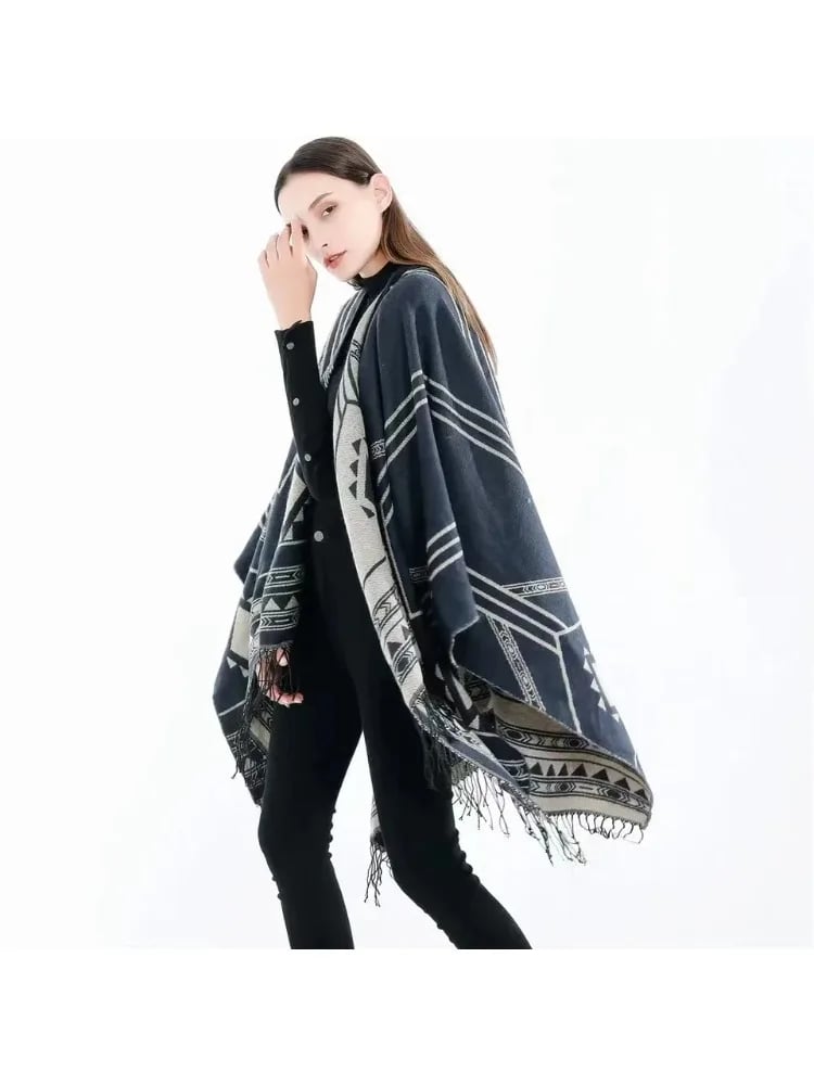 Cloak Poncho Capes 2025 New Indian Nepalese Style Geometric Tassel Split Women Shawl Warm Air Conditioning Room Lady