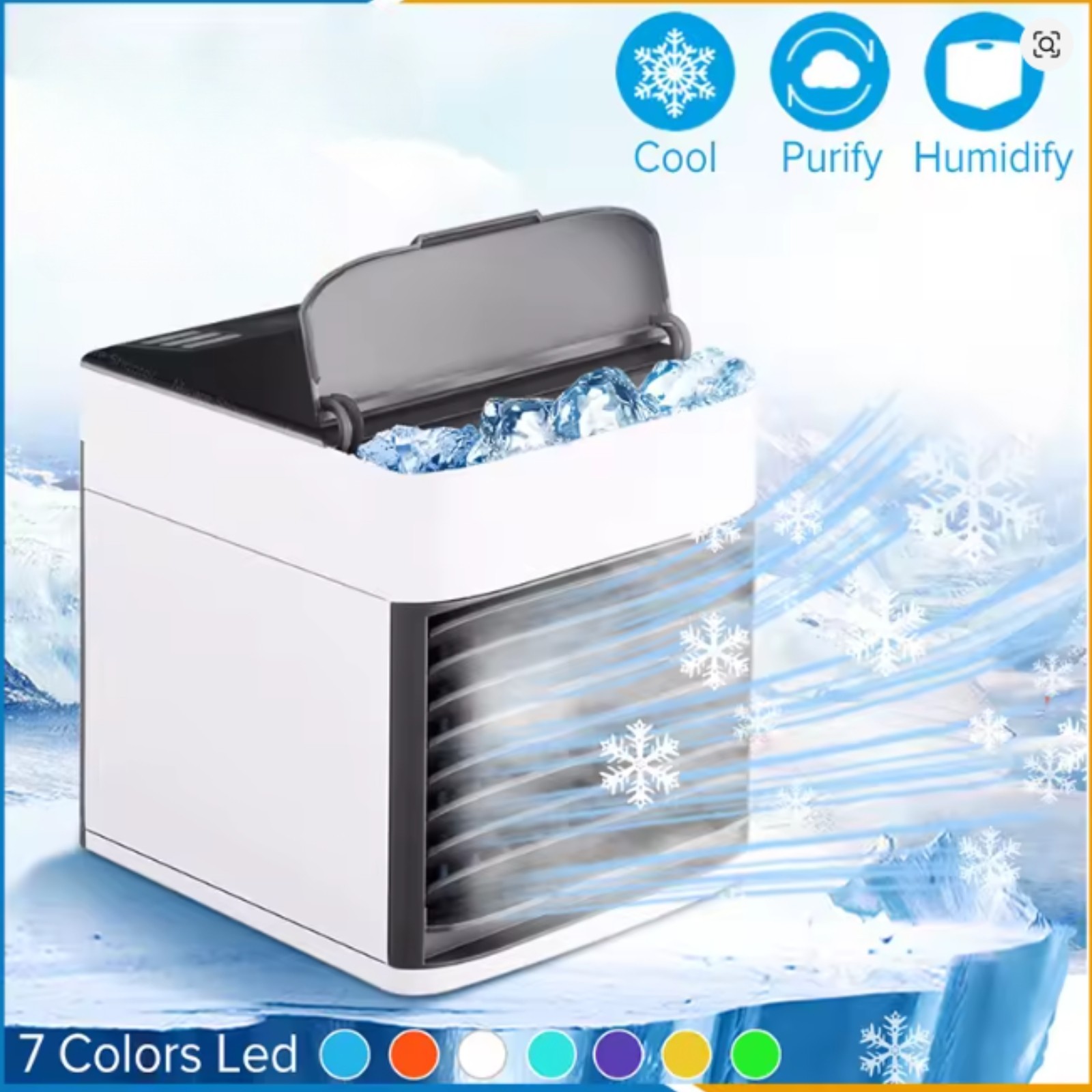 Mini Air Cooler Fan USB – Portable Room AC Humidifier Purifier 7 LED Lights