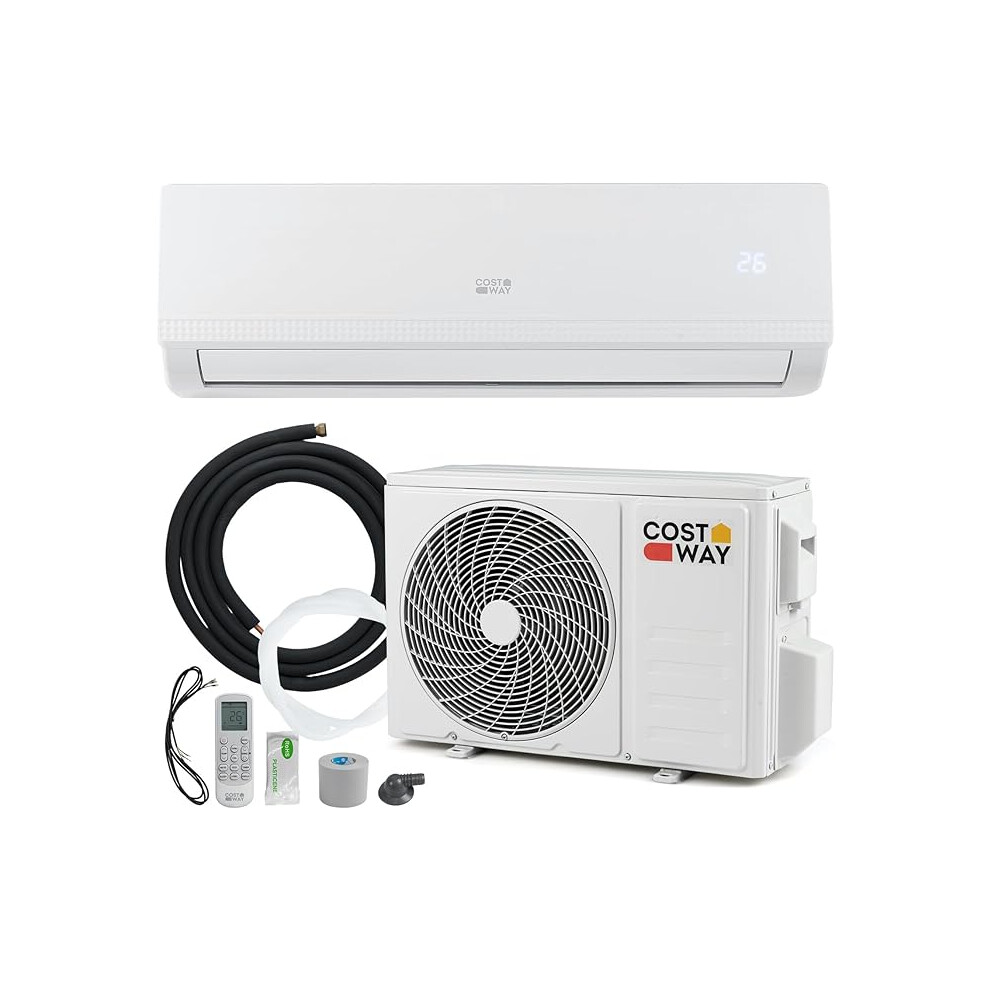COSTWAY 9000 BTU Air Conditioner Wall Split, 5 In 1 Air Cooler Heater Dehumidifier Air Purifier Fan With Heat Pump & Remote Control