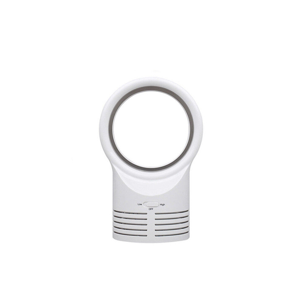 Bladeless Mini Fan Round Desktop Leafless Fan Air Cooling Fan Air Cooler, Style:UK Plug(White)