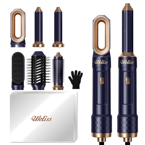 UKLISS 6 in 1 Hairstyler, Hair Dryer Brush Set with Automatic Hair Wrap Curler, Thermal Brush, Hot Air Brush, Hair Straightener, Multistyler Gifts for Women Volume, Curls, Smooth, Dry & Style - Blue