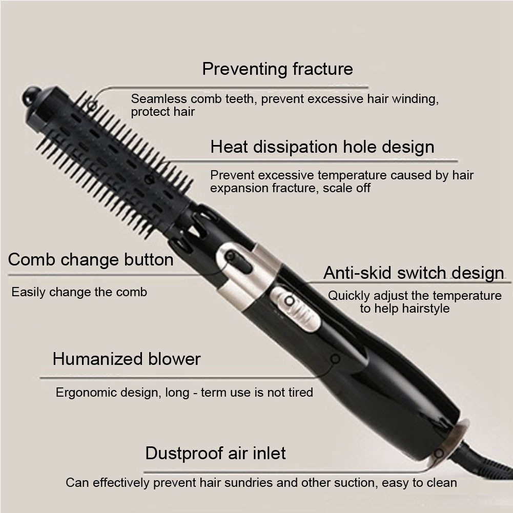 1200W Hair Dryer Hot Air Brush Styler Replaceable Head Straightener Curler Comb