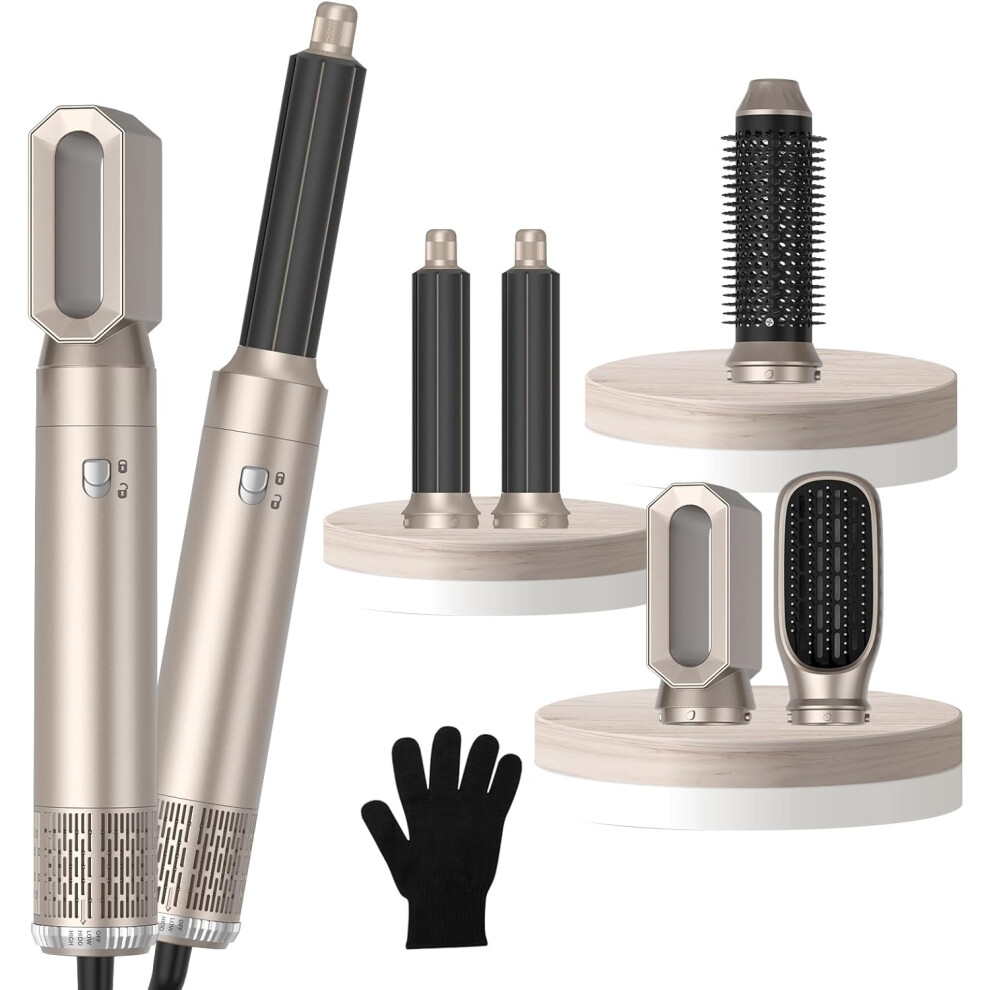 (Gold&white) New Updated 5 in 1 Hair Styler, Hot Air Brush, Hair Dryer Brush, Hair Curler, Air Styler, Hair Dryer Set - Perfect for Volumizing, Straig