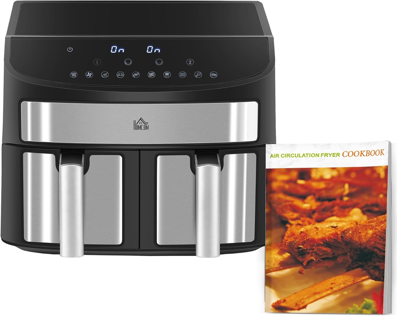 HOMCOM Dual Zone Digital Air Fryer, 10-in-1 8L Family Size with 2 x 4L...