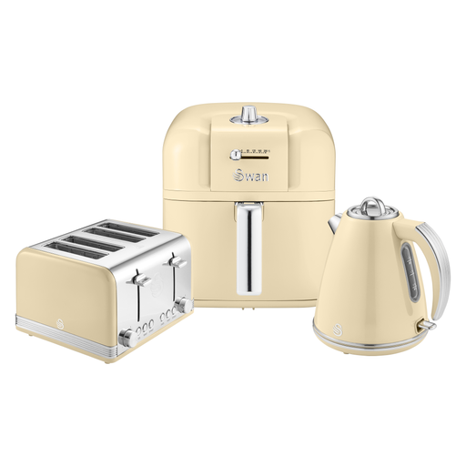 SWAN Retro Cream Kettle 4 Slice Toaster & Dual Basket Air Fryer Matching Set