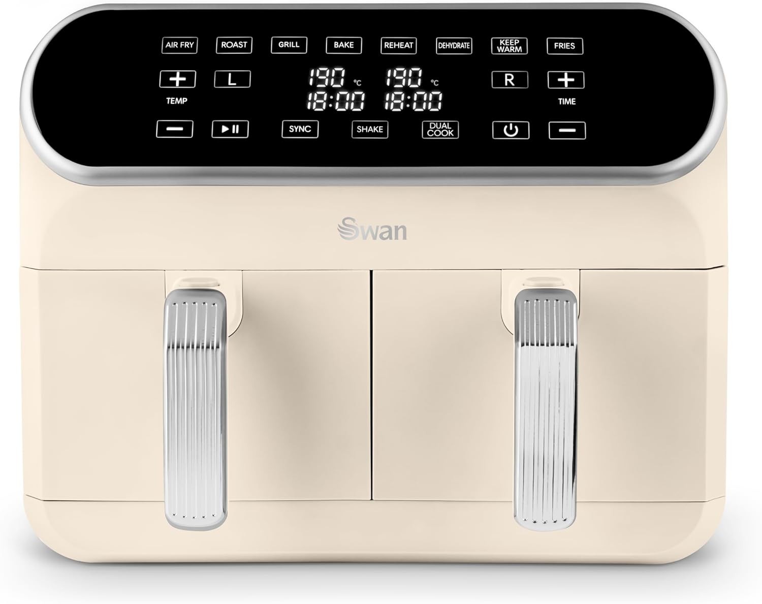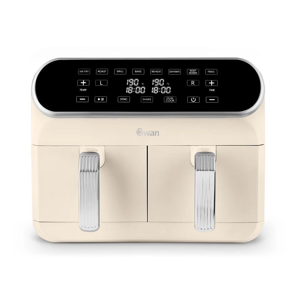 Swan Retro Dual Basket Air Fryer Cream 8L 1700W LED Smart Sync Cooking SD10519C