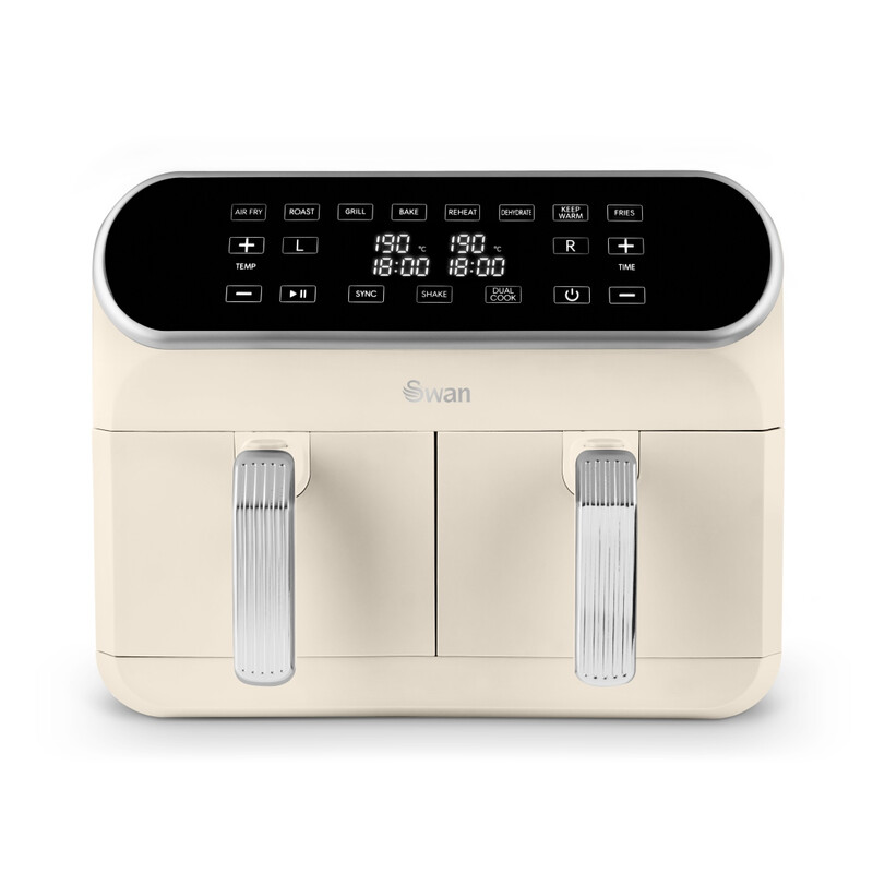 Swan Retro Dual Basket Air Fryer with Swan Cyclone Technology - Cream, 8L, 1700W, LED Display, 8 Pre-Set Cooking Options - Air fry/ Roast/ Broil/ Bake/ Reheat/ Dehydrate/ Keep Warm/ French Fries, Adjustable Temperature, SD10519C