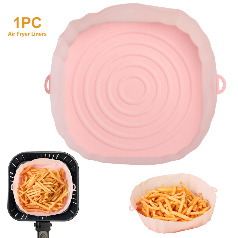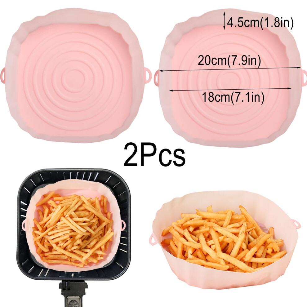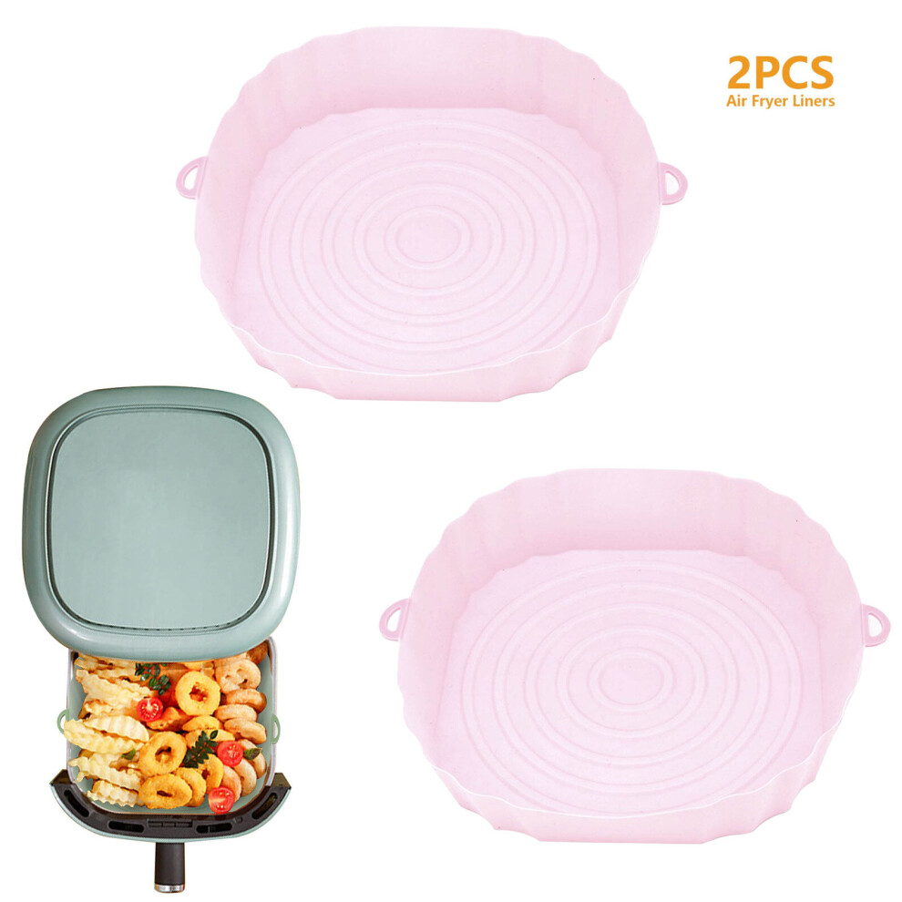 (2pcs pink) 3/2/1Pcs Air Fryer Silicone Basket Pot Oven Baking Tray Fried Pizza Chicken Mat Round Replacemen AirFryer Grill Pan Pad Liner