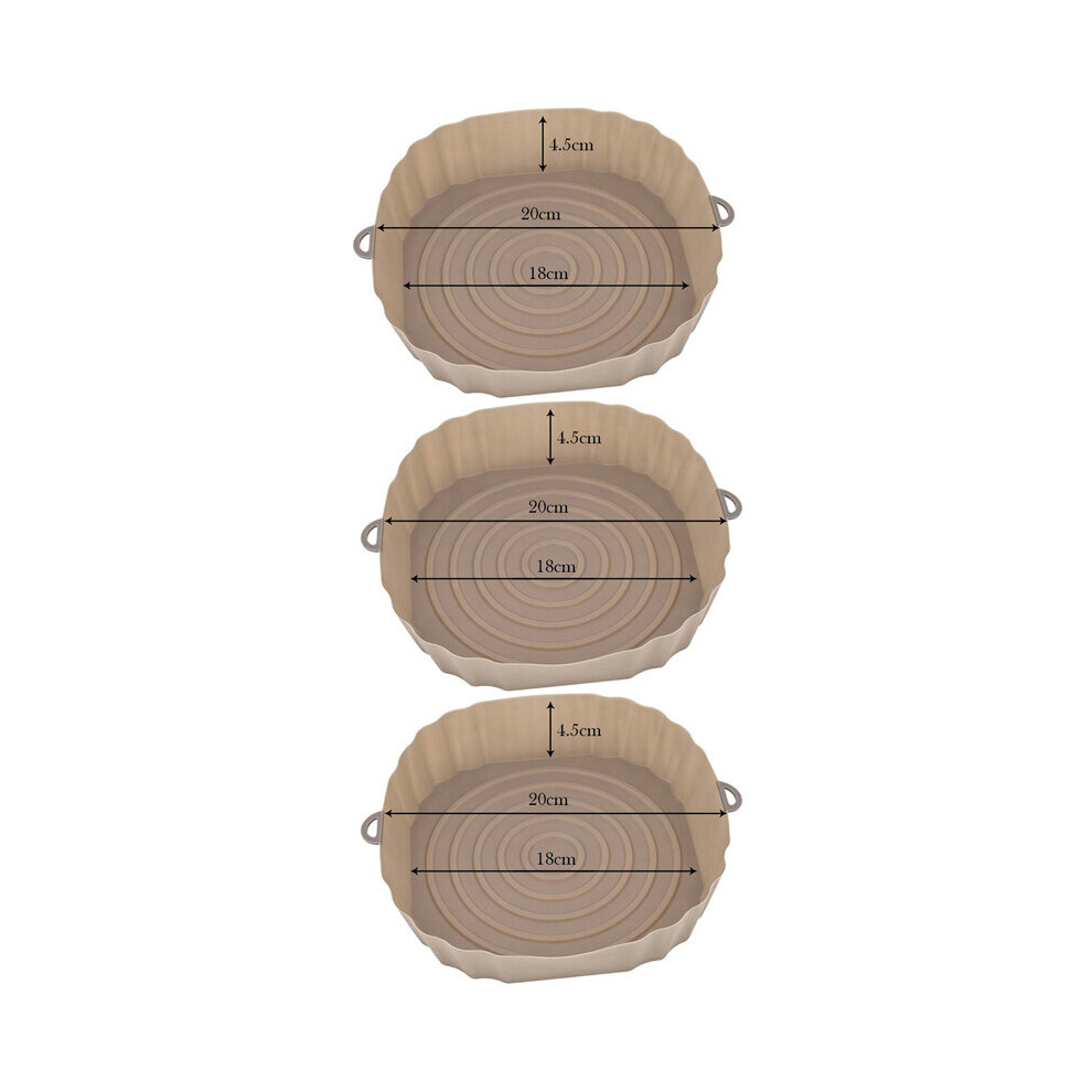 (3Pcs Brown) 3Pcs Air Fryer Silicone Basket Pot Oven Baking Tray Fried Pizza Chicken Mat Round Replacemen AirFryer Grill Pan Pad Liner