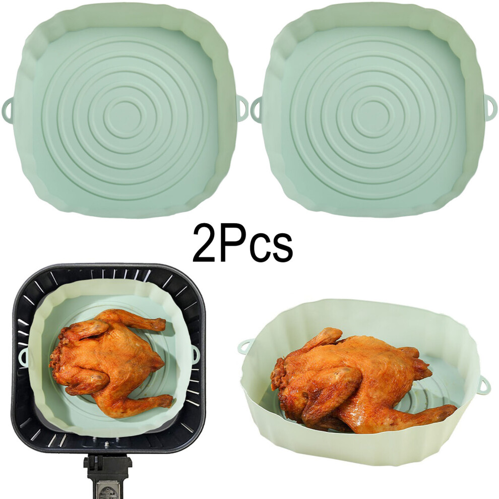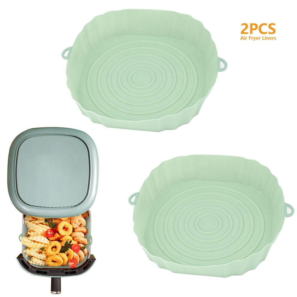 (2pcs green) 3/2/1Pcs Air Fryer Silicone Basket Pot Oven Baking Tray Fried Pizza Chicken Mat Round Replacemen AirFryer Grill Pan Pad Liner
