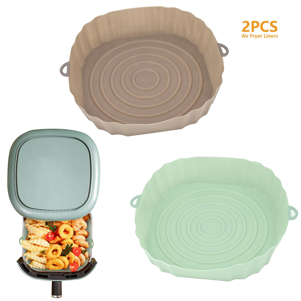 (2pcs brown green) 3/2/1Pcs Air Fryer Silicone Basket Pot Oven Baking Tray Fried Pizza Chicken Mat Round Replacemen AirFryer Grill Pan Pad Liner