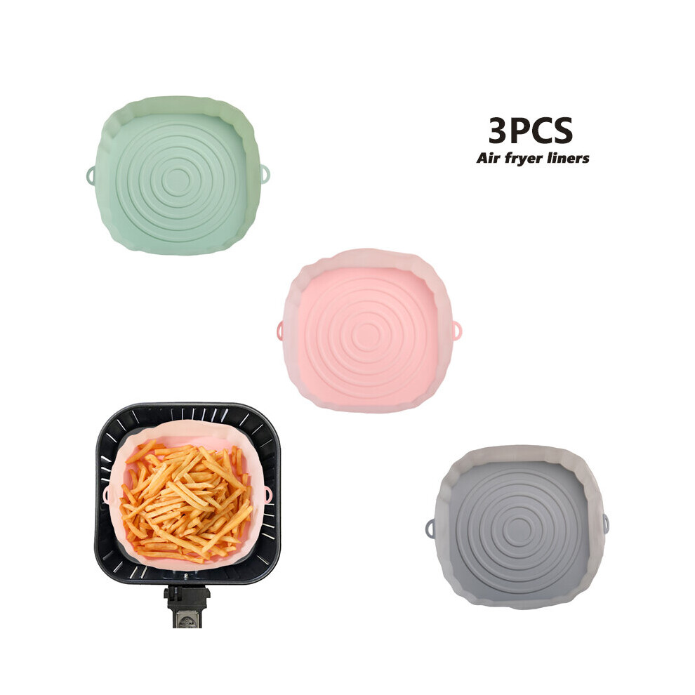 (3pcs green pink gray) 3/2/1Pcs Air Fryer Silicone Basket Pot Oven Baking Tray Fried Pizza Chicken Mat Round Replacemen AirFryer Grill Pan Pad Liner