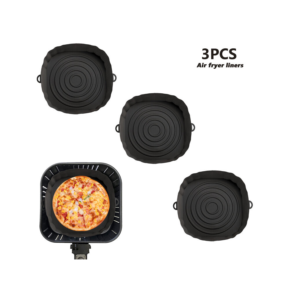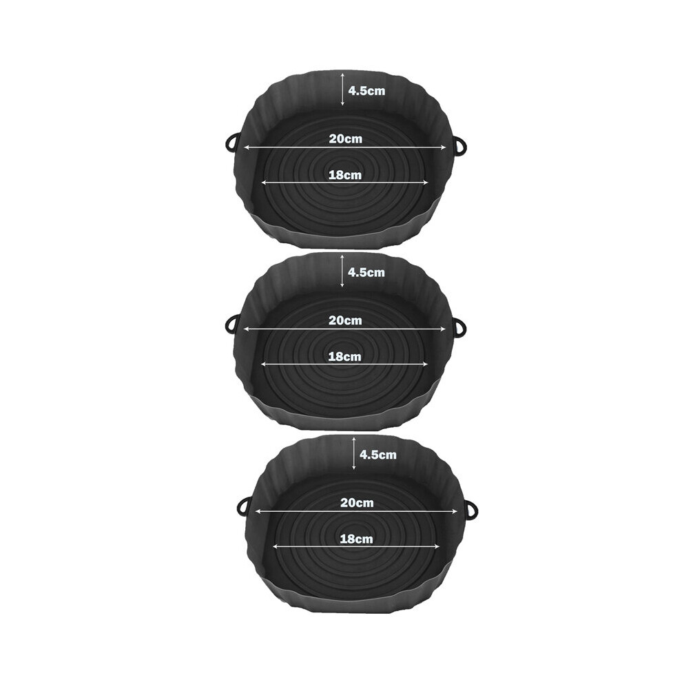 (3Pcs Black) 3Pcs Air Fryer Silicone Basket Pot Oven Baking Tray Fried Pizza Chicken Mat Round Replacemen AirFryer Grill Pan Pad Liner