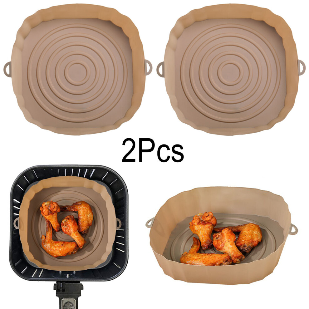 (2pcs brown) 3/2/1Pcs Air Fryer Silicone Basket Pot Oven Baking Tray Fried Pizza Chicken Mat Round Replacemen AirFryer Grill Pan Pad Liner