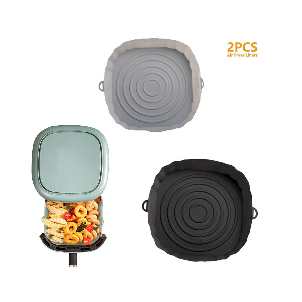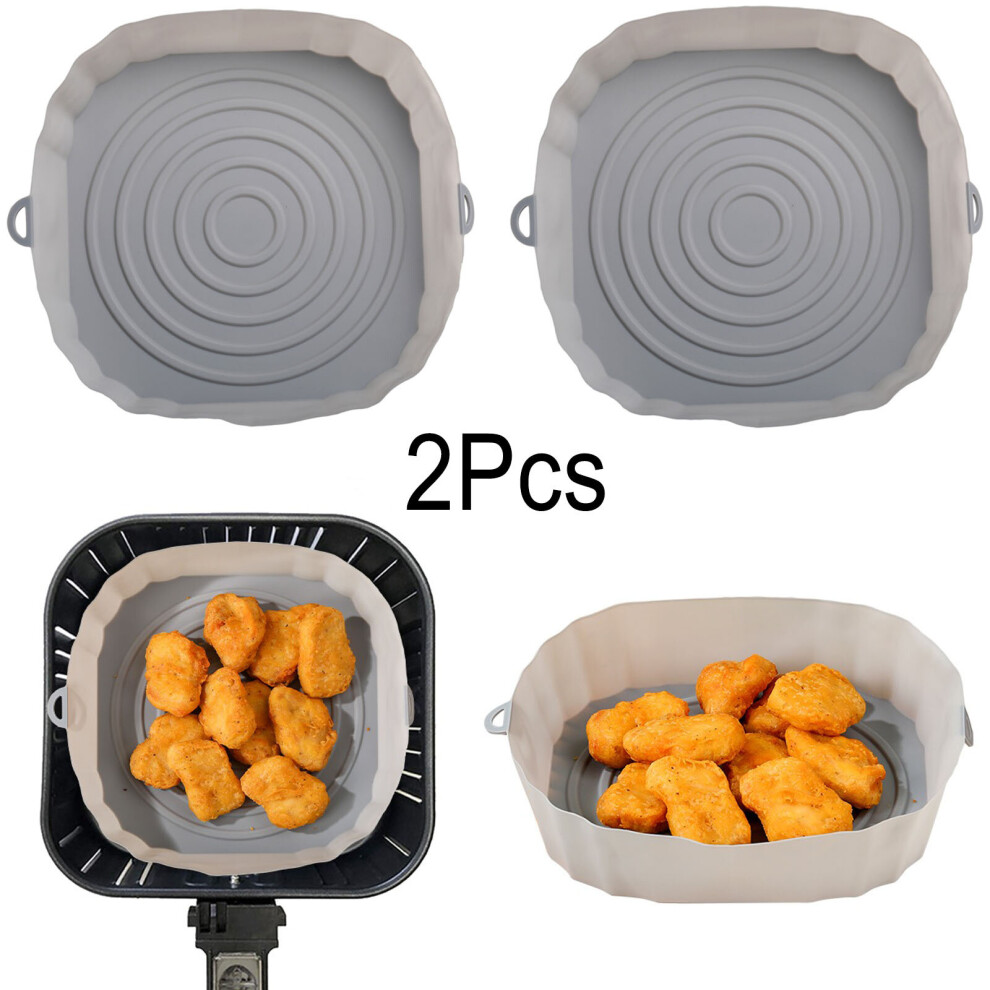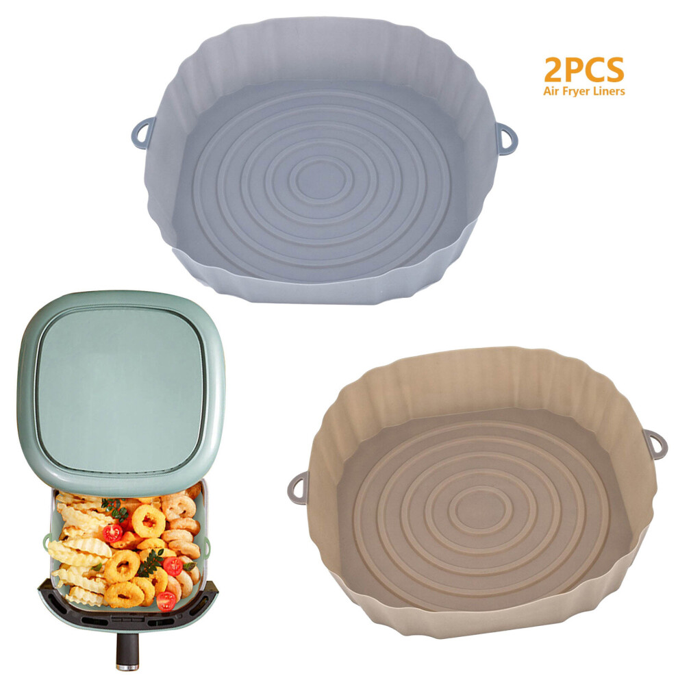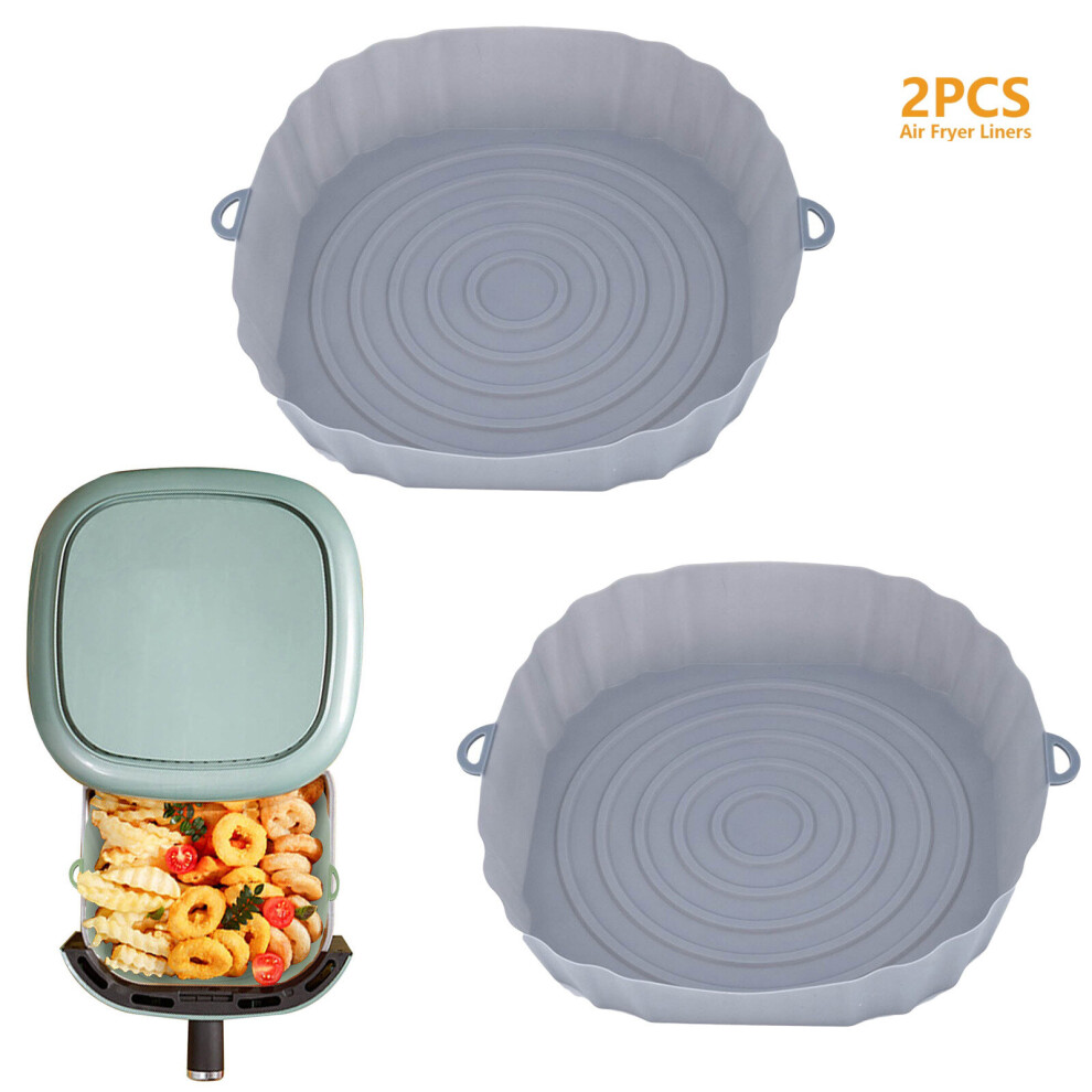 (2Pcs Gray) 3Pcs Air Fryer Silicone Basket Pot Oven Baking Tray Fried Pizza Chicken Mat Round Replacemen AirFryer Grill Pan Pad Liner