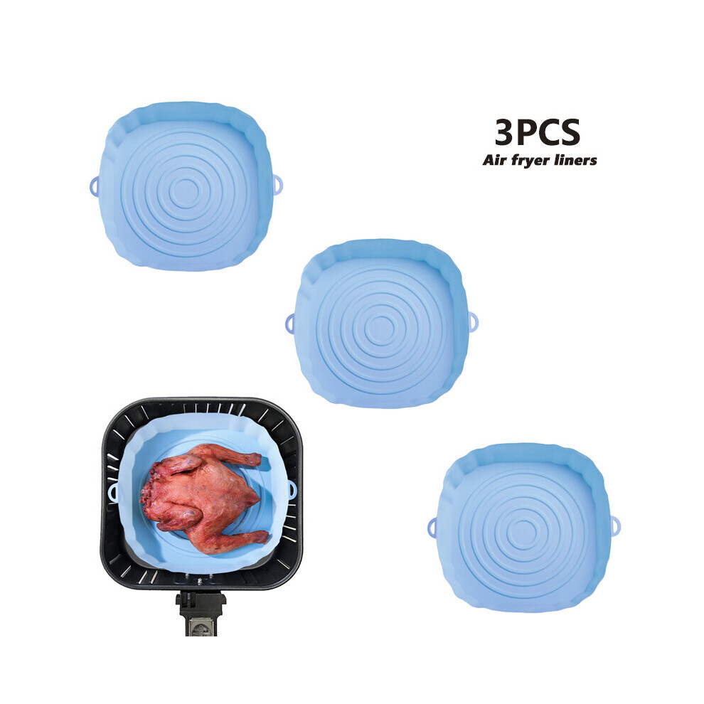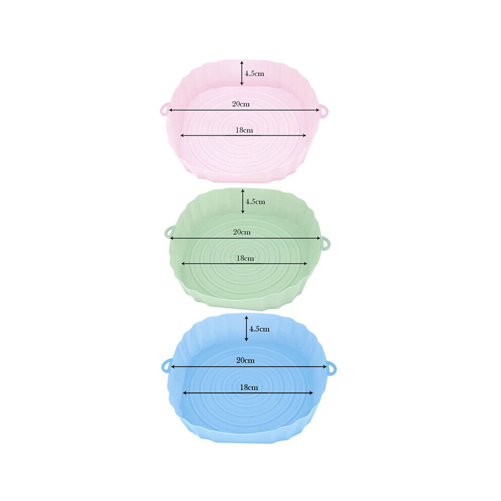(3Pcs Blue) 3Pcs Air Fryer Silicone Basket Pot Oven Baking Tray Fried Pizza Chicken Mat Round Replacemen AirFryer Grill Pan Pad Liner
