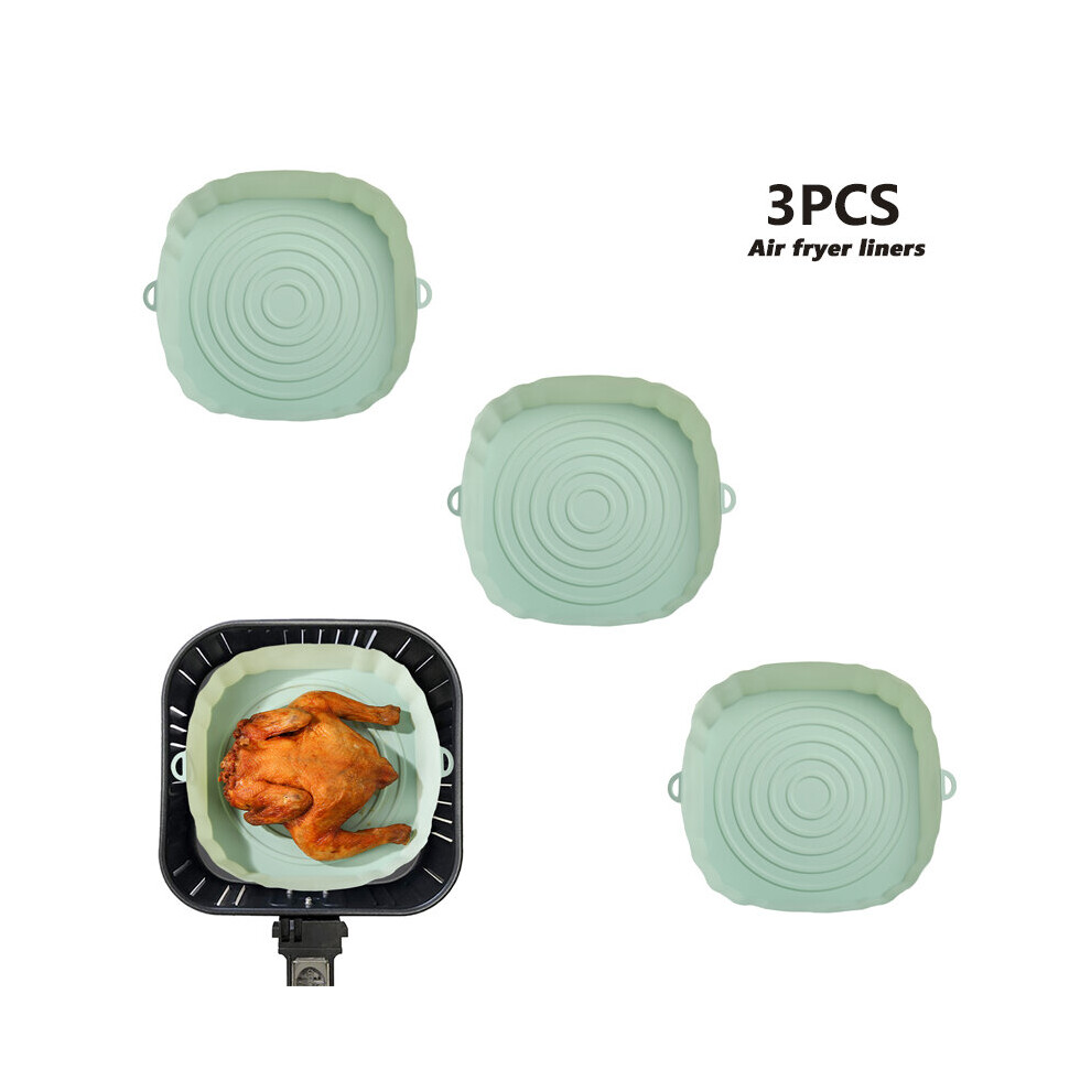 (3Pcs Light Green) 3Pcs Air Fryer Silicone Basket Pot Oven Baking Tray Fried Pizza Chicken Mat Round Replacemen AirFryer Grill Pan Pad Liner