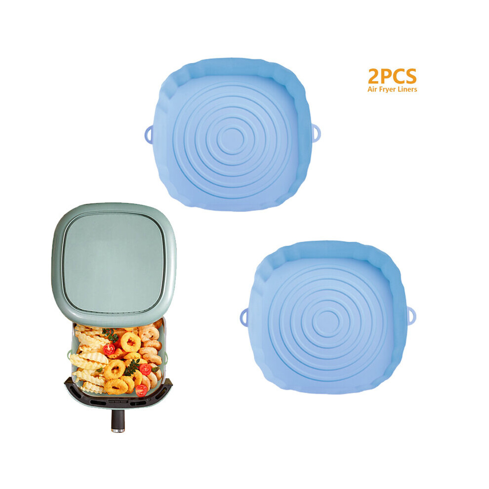 (2Pcs Blue) 3Pcs Air Fryer Silicone Basket Pot Oven Baking Tray Fried Pizza Chicken Mat Round Replacemen AirFryer Grill Pan Pad Liner