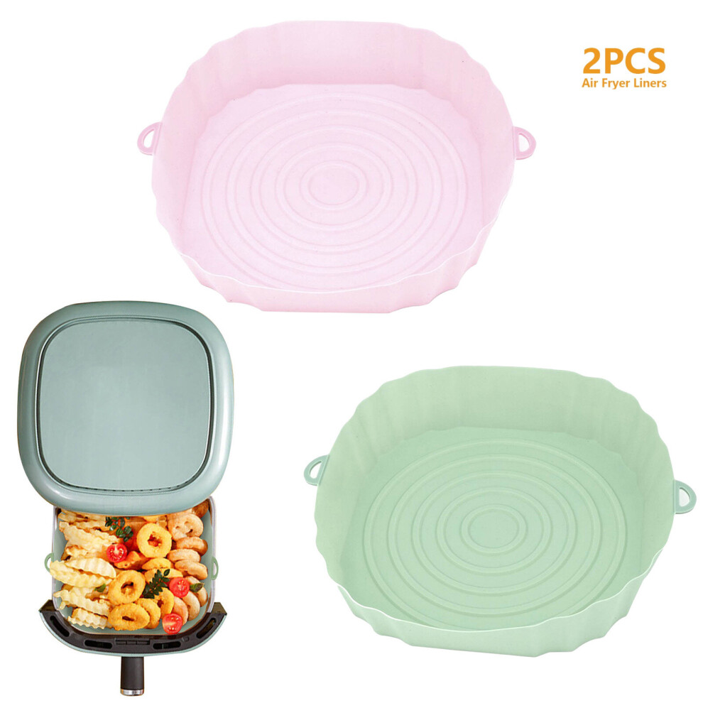 (2pcs pink green) 3/2/1Pcs Air Fryer Silicone Basket Pot Oven Baking Tray Fried Pizza Chicken Mat Round Replacemen AirFryer Grill Pan Pad Liner