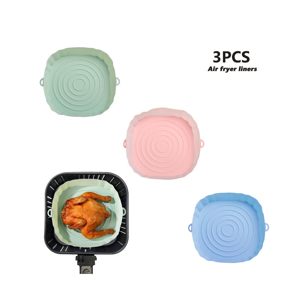 (3pcs green pink blue) 3/2/1Pcs Air Fryer Silicone Basket Pot Oven Baking Tray Fried Pizza Chicken Mat Round Replacemen AirFryer Grill Pan Pad Liner