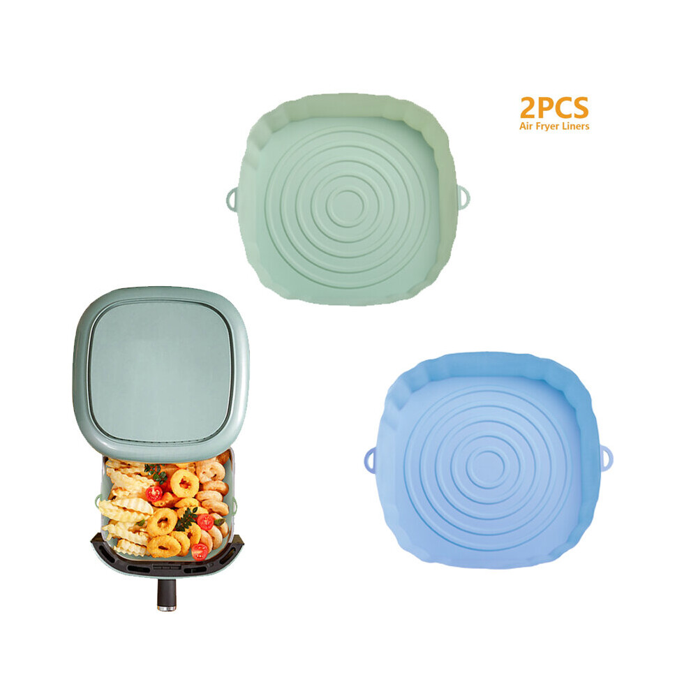 (2pcs blue green) 3/2/1Pcs Air Fryer Silicone Basket Pot Oven Baking Tray Fried Pizza Chicken Mat Round Replacemen AirFryer Grill Pan Pad Liner