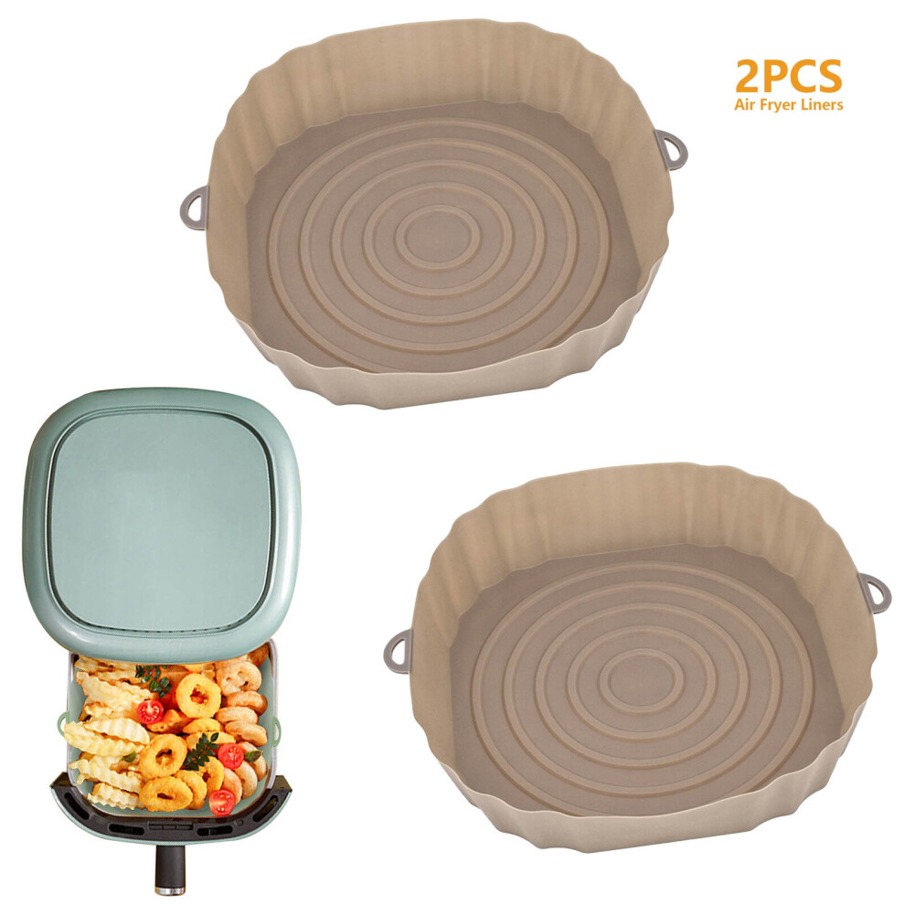 (2pcs gray coffee) 3/2/1Pcs Air Fryer Silicone Basket Pot Oven Baking Tray Fried Pizza Chicken Mat Round Replacemen AirFryer Grill Pan Pad Liner
