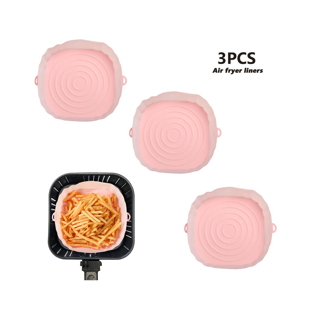 (3pcs pink) 3/2/1Pcs Air Fryer Silicone Basket Pot Oven Baking Tray Fried Pizza Chicken Mat Round Replacemen AirFryer Grill Pan Pad Liner
