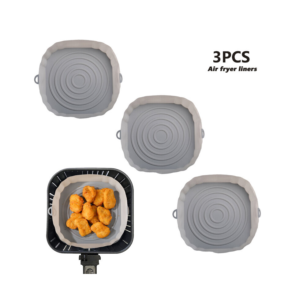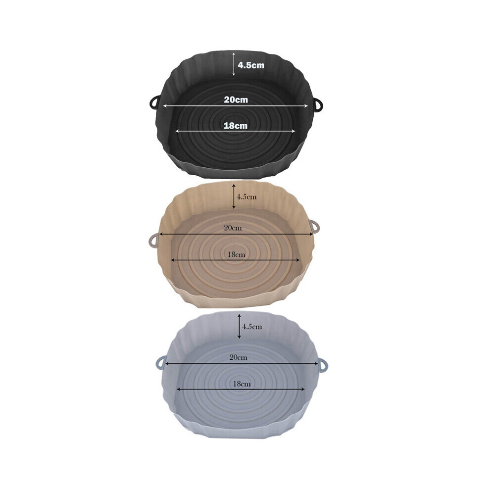 (3Pcs Gray) 3Pcs Air Fryer Silicone Basket Pot Oven Baking Tray Fried Pizza Chicken Mat Round Replacemen AirFryer Grill Pan Pad Liner