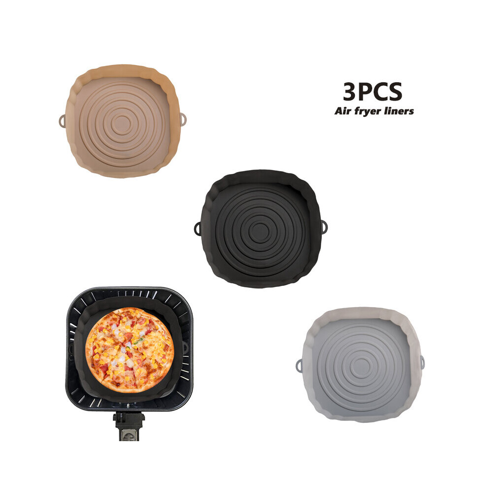 (3pc brown black gra) 3/2/1Pcs Air Fryer Silicone Basket Pot Oven Baking Tray Fried Pizza Chicken Mat Round Replacemen AirFryer Grill Pan Pad Liner