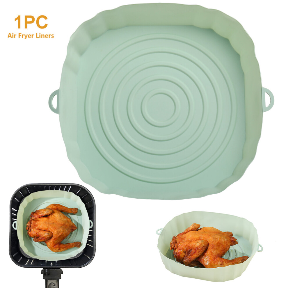 (1pc green) 3/2/1Pcs Air Fryer Silicone Basket Pot Oven Baking Tray Fried Pizza Chicken Mat Round Replacemen AirFryer Grill Pan Pad Liner