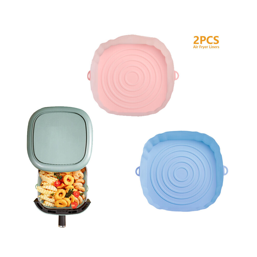 (2pcs pink blue) 3/2/1Pcs Air Fryer Silicone Basket Pot Oven Baking Tray Fried Pizza Chicken Mat Round Replacemen AirFryer Grill Pan Pad Liner