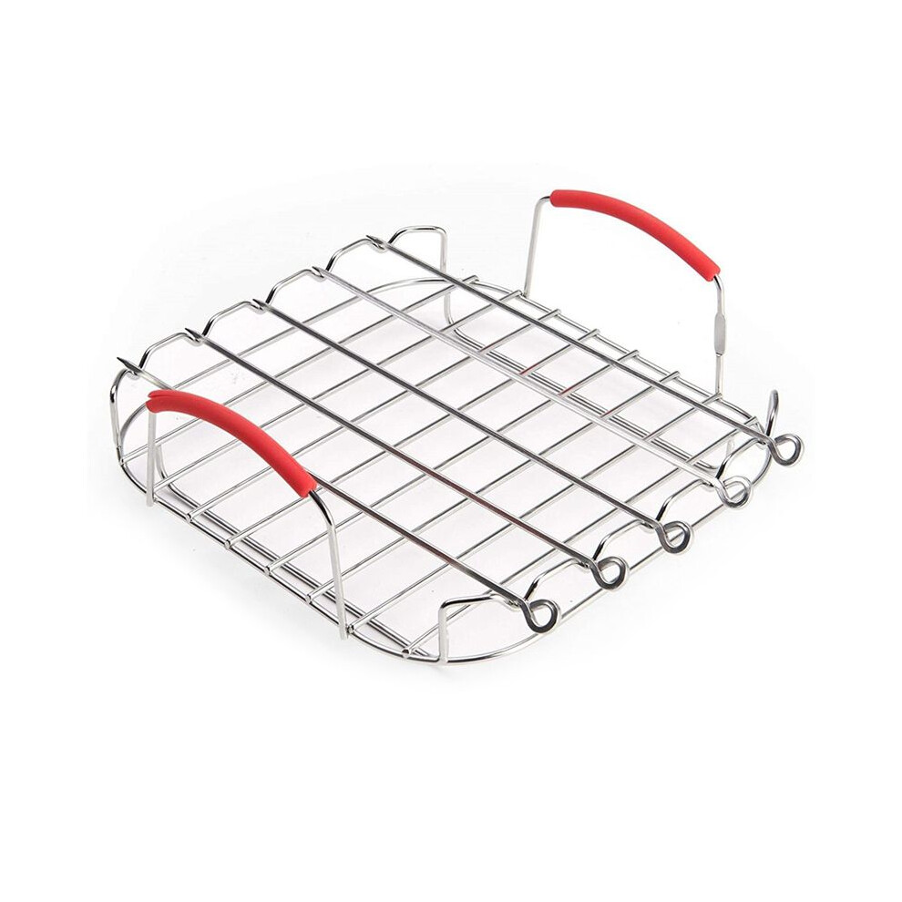 9 Inch Stainless Steel AirFryer Grill Rack Versatile Square Roasting Grill with Skewers Baking Tray AirFryers Holder