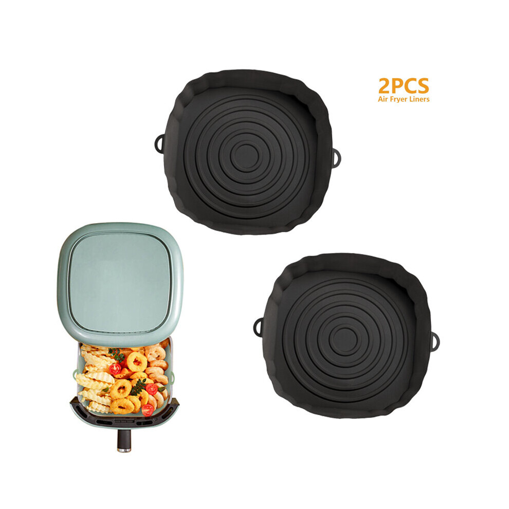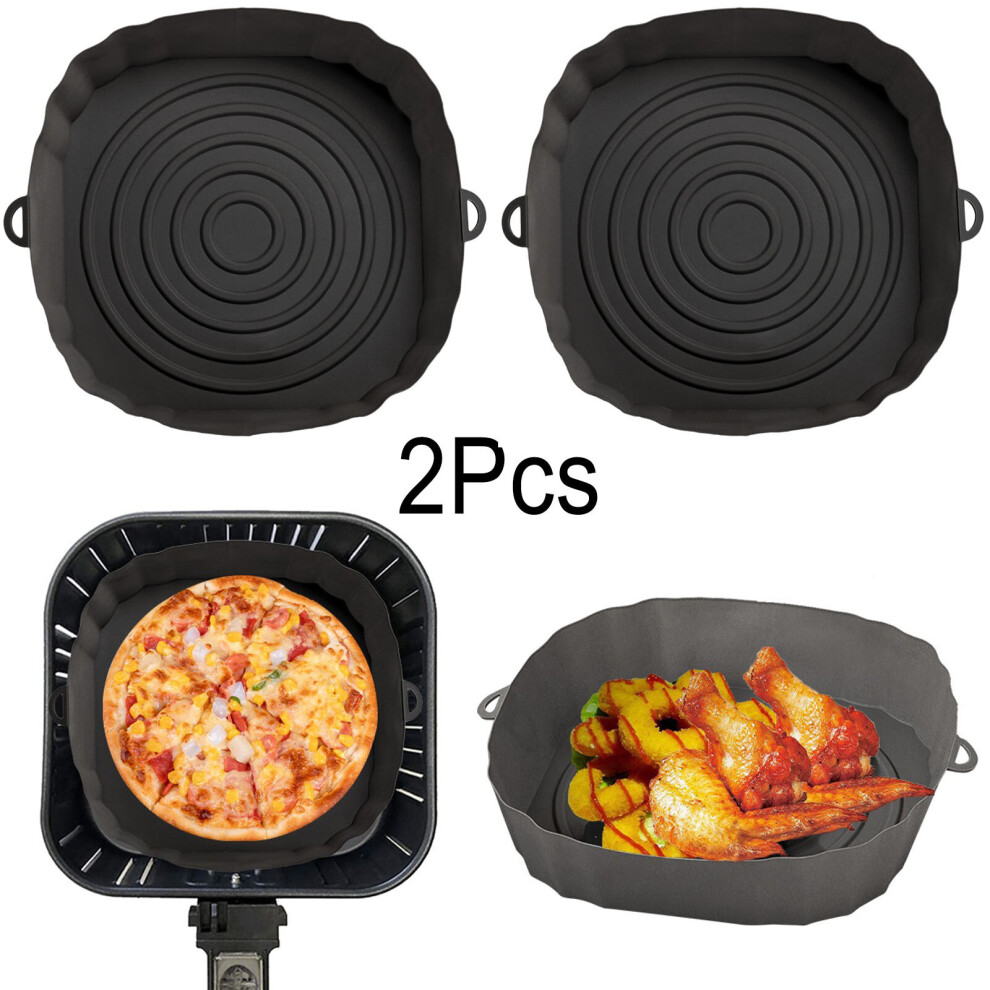 (2pcs black) 3/2/1Pcs Air Fryer Silicone Basket Pot Oven Baking Tray Fried Pizza Chicken Mat Round Replacemen AirFryer Grill Pan Pad Liner